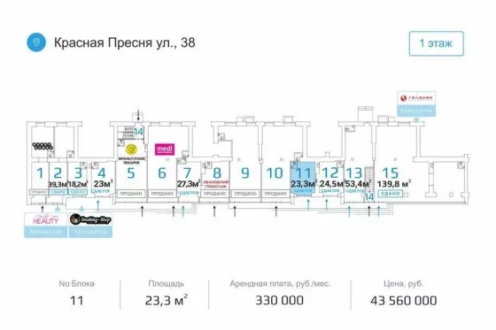 Продается торговое помещение, 23.3 кв.м., 1/9 эт