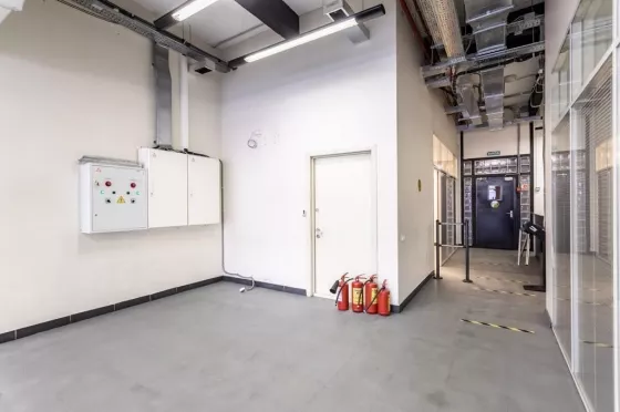 В помещении высокие потолки - 4,2 м, планировка смешанная, установлена приточно-вытяжная система вентиляции с охлаждением, электрическая мощность 70 кВт.