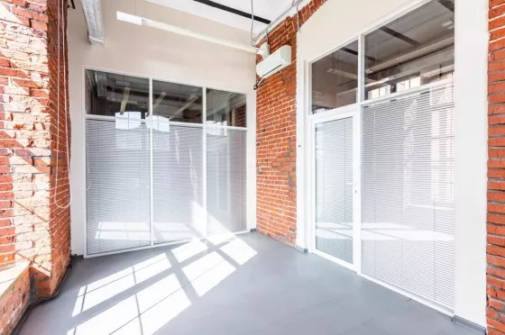 Офис с отделкой в стиле лофт находится на 3 этаже бизнес-центра "Кноп".