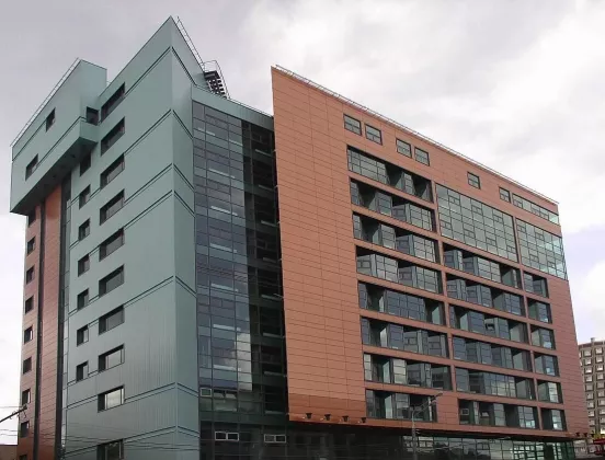 12-этажный бизнес-центр возведен в 2007 году. Оригинальная форма фасадного остекления в стиле хай-тек, облицованный розовым мрамором и гранитом фасад здания и витринная входная группа выгодно выделяют здание на фоне окружающей застройки. Интерьеры вестибюлей выполнены с использованием качественных и дорогих материалов. В холле размещено пять малошумных лифтов марки OTIS, два из которых – панорамные. Архитектурной особенностью делового комплекса является центральный атриум с прозрачной крышей, который пропускает много дневного света.