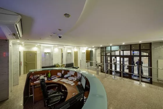 Особняк представляет собой 5-ти этажное здание с кабинетной офисной планировкой. На третьем этаже расположена представительская зона с приемной, кабинетами и конференц-залами руководителей. Особняк располагает собственной индивидуальной входной группой. Обустроенные переговорные комнаты с самым современным оборудованием. Премиальные площади для размещения руководства компании. Для пользования арендатора выделено пять закрепленных машиномест во дворе.