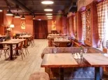 Стены кирпичные (частично окрашены), сводчатый потолок времен фабрики покрашенный в черный цвет, полы наливные.
