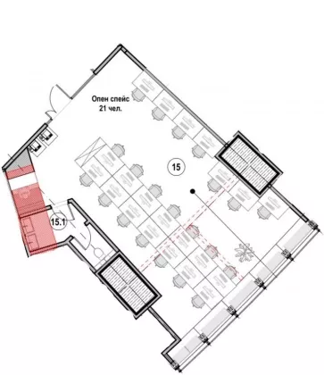 - Планировка 1 кабинет и опен спейс;