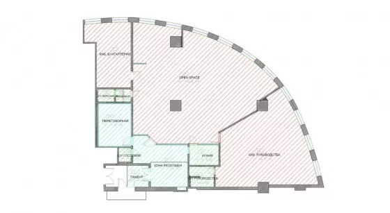 В офисе выполнен дизайнерский ремонт. Смешанная планировка: большой open-space, кабинет руководителя, кухня, с/у, переговорная комната, зона ресепшн.