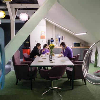 Коворкинг в особняке класса В+. Смешанная планировка. Системы охраны: круглосуточный пост охраны, видеонаблюдение, охранные датчики, охрана территории и доступа в здание. Парковка: Гостевая, наземная на территории, гаражи-боксы на территории. Всего - 33 м/мест.