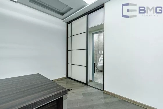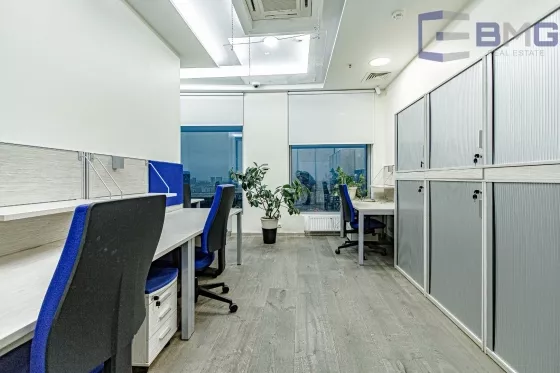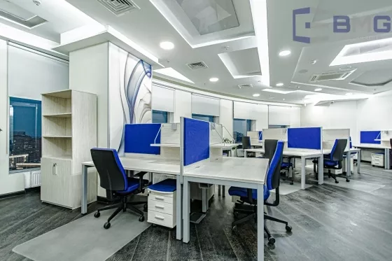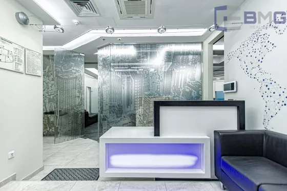 Дизайнерский дорогой ремонт, паркетные полы, итальянская и немецкая мебель, ортопедические Шведские кресла для персонала. Панорамное остекление с лучшим видом на Москву (19 этаж). Вблизи здания нет высоток, преграждающих солнечный свет. Поэтому все помещения имеют хорошее естественное освещение. Существующая планировка послужит оптимальным решением для ваших задач. На этажах бизнес центра гармонично сочетаются кабинеты и пространства open space, переговорные и рекреационные зоны. Здесь все организовано для вашего удобства и эффективного ведения дел.