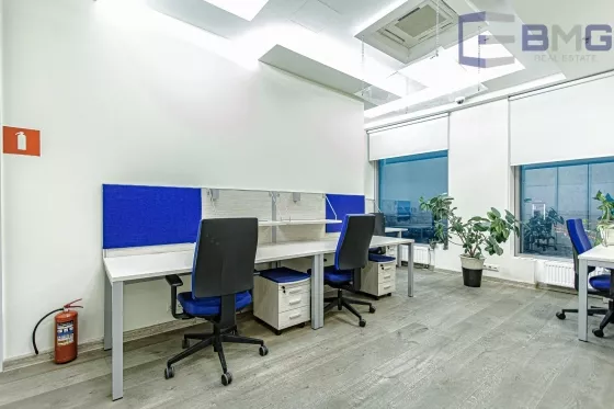 Блок состоит из помещения рецепшен, openspace с 20 рабочими местами, кабинет на 4 рабочих места, переговорная, кабинет руководителя с персональным с/у +душевая, кухня, 2 с/у для персонала Все помещения, отделка, мебель и ответственность перед 3 лицами застрахованы.