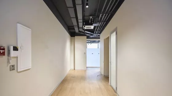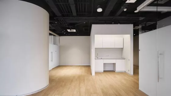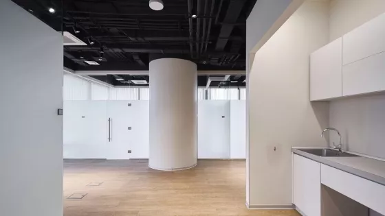 - На этаже общая кухня и переговорная комната.