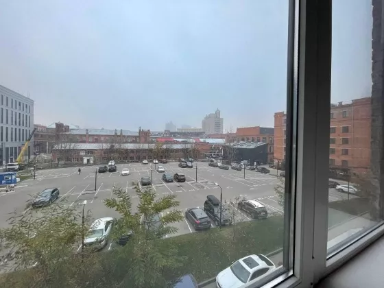Из широких окон вид на исторический деловой квартал "Трехгорная Мануфактура".