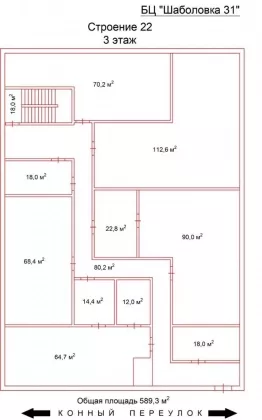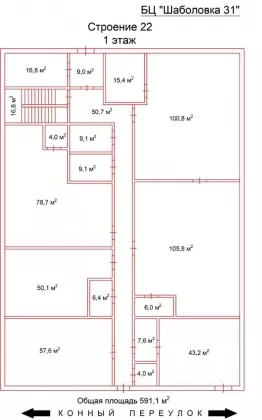 Помещение располагается в строении «22», этаж 1-3общей S = 1879,1 м²